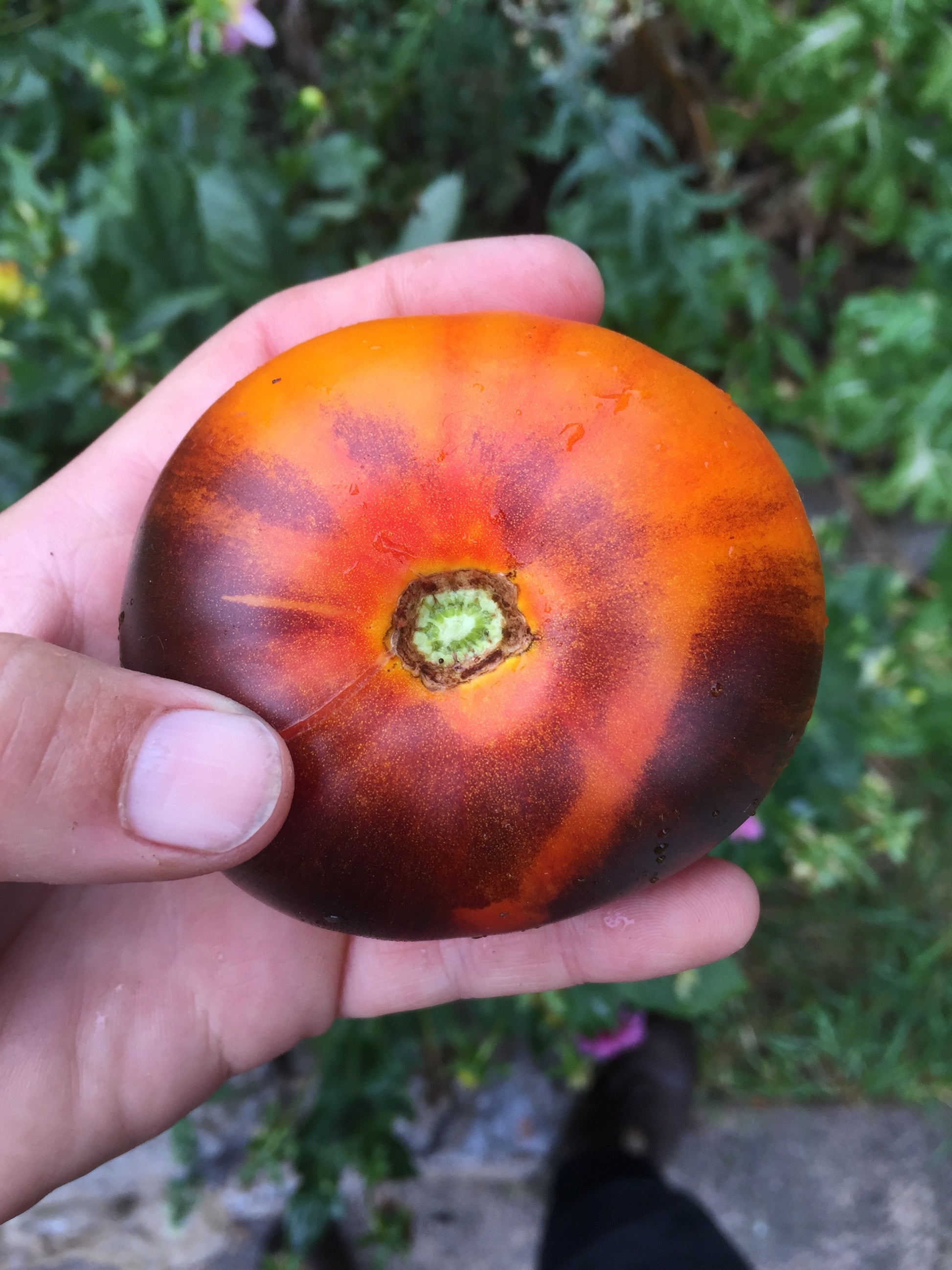 Winner of the 2017 Heirloom Expo, breeder Brad Gates nailed it with this 4 to 6 oz slicer that ripens to a deep yellow/orange and has a cool red streak on the inside. Its post harvest storability is remarkable, but the best thing about this tomato is its flavour - more precisely its sweetness! The sweetest variety that isn't a cherry tomato that we've come across to date. If you like sweet tomatoes, try this one - seriously, a gem indeed! 80 days to maturity.