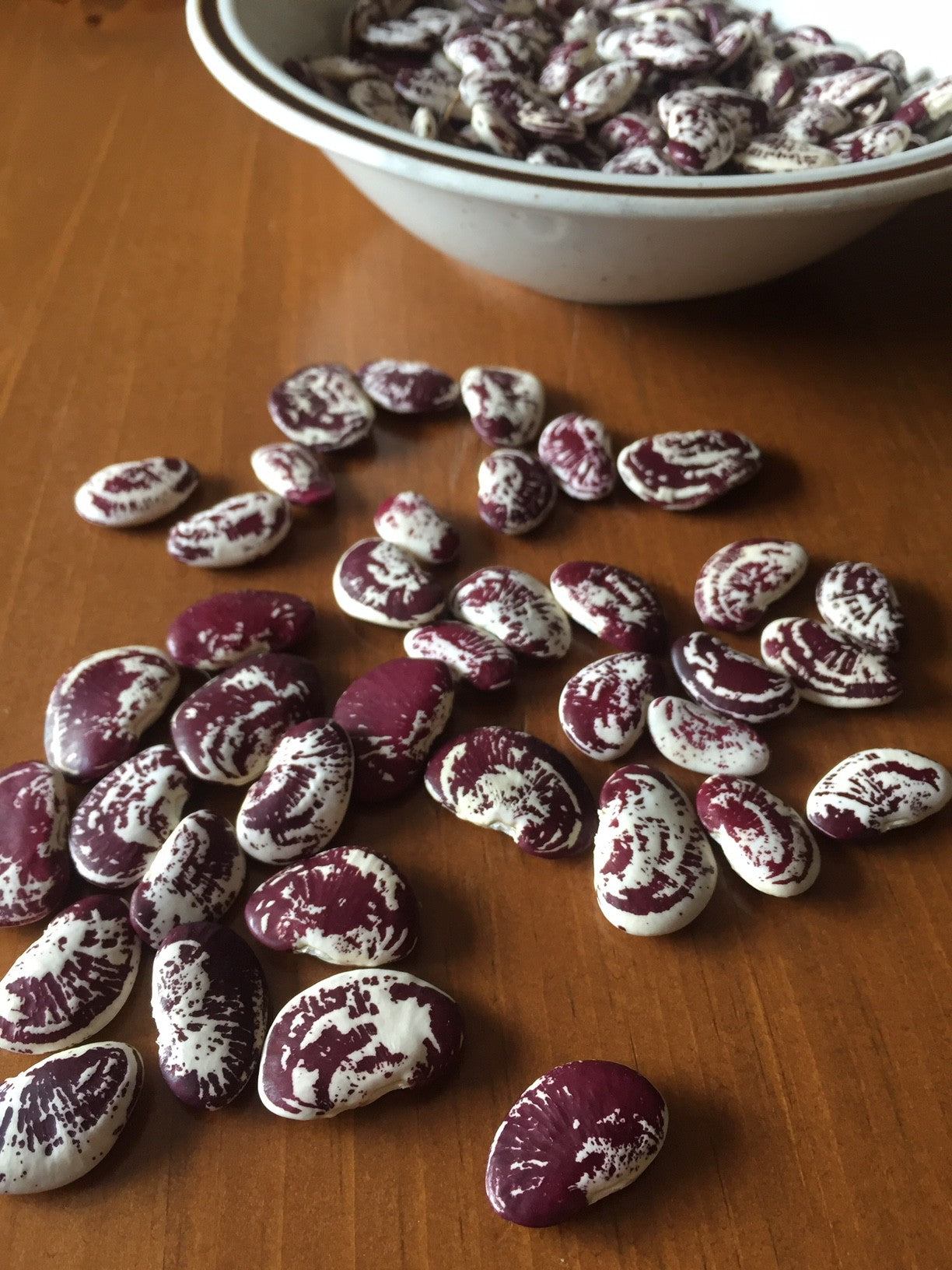 Also known as Christmas Lima, and recognized as the beans on the cover of Barbara Kingsolver's Animal, Vegetable, Miracle, this splendid dry bean delights in a warm bowl on a cold fall day (and elevated as a side dish for special feasts!) - maybe even enough to please you if you don't like lima beans! The plants grow tall, up to 10', and so need trellising. Pods grow abundantly, producing 3-4 seeds per pod. Lima beans can be harvested as shelling beans when seeds are plump and green inside, though we think this variety shines as dry bean. When pods turn brown and dry they are ready to harvest. When cooked, they have a slight chestnut flavour, which lends them well to warm bean salad with onion, a splash of oil, salt and parsley. Also great in stews of course! 90-95 days to maturity.