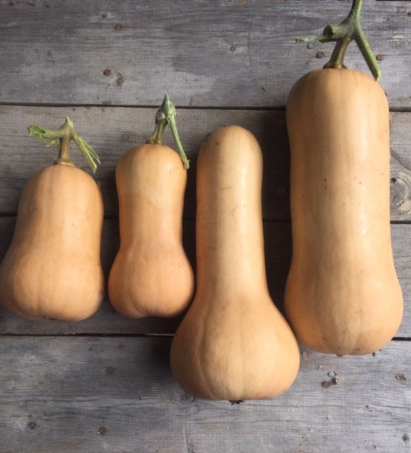 Bred by Andrew Still of Adaptive Seeds, this multi-variety cross of a bunch of early-ripening butternuts has been selected for earliness - yes! This population has also been farm selected here on Wolfe Island since 2016 for classic shape, size and drought tolerance. We do like to keep some variation in shape in the population, so expect some variation in these 2 to 4 lb. fruit on 6 to 8’ vines. Good baked or in soup; stores well. 90 days to maturity. This is an OSSI-pledged variety.